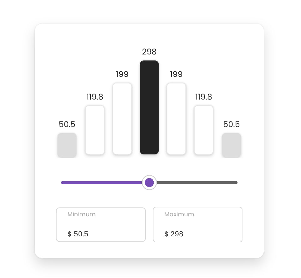 A component that dynamically visualizes your selected range through a slider, with corresponding bars that adjust in height to reflect the selected values.